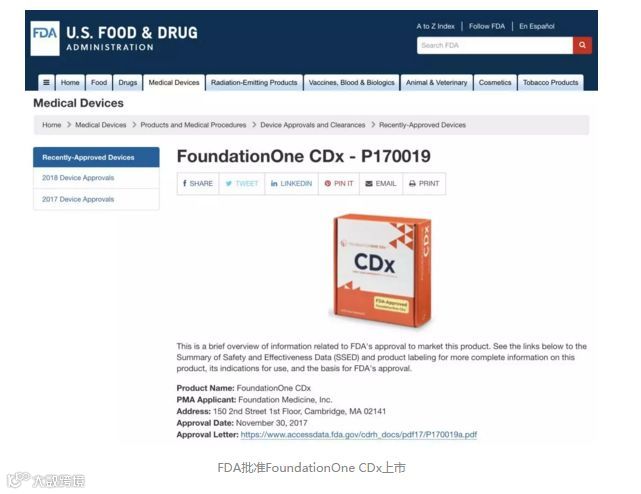 基于前期的一系列高质量研究,FDA最终批准了FoundationOne CDx成为首个泛瘤种伴随诊断产品,它覆盖了324个基因,两个预测免疫检查点抑制剂疗效的分子标记MSI和TMB(TMB计算方法:0.8Mb编码区域里包含所有的同义突变和非同义突变,并去掉胚系突变和肿瘤驱动突变),覆盖全部实体瘤(除肉瘤)。