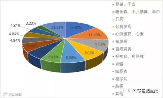 表2 干细胞备案项目疾病汇总