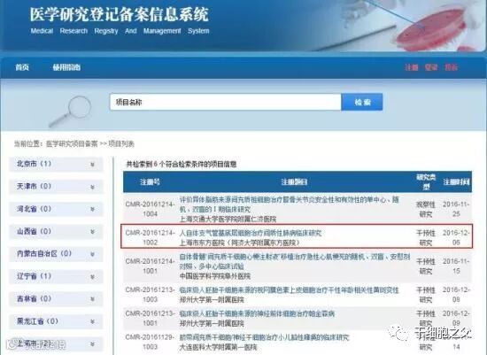 表1 干细胞临床研究备案项目