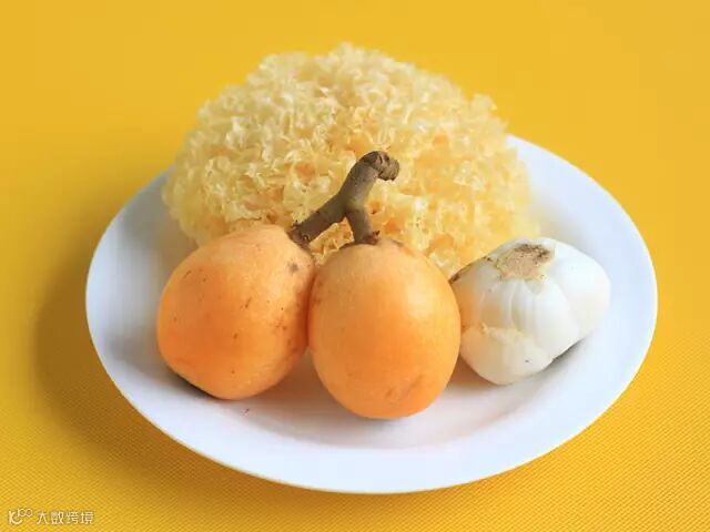 准备食材:枇杷2个、银耳适量、百合适量、冰糖适量、水适量。