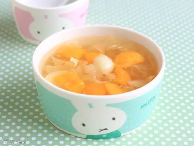 步骤3:锅内煮开水放入银耳、冰糖、干百合小火煨40分钟。