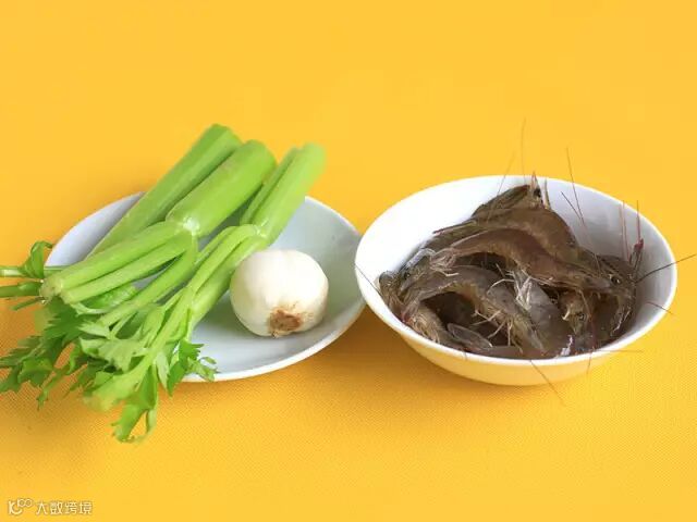 准备食材:虾仁1小碗、百合(干)1小碗、西芹1把、食盐适量、淀粉少许、葱油适量
