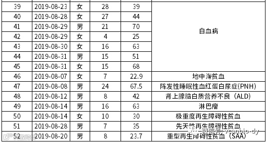 本月脐带血治疗涉及急性淋巴细胞白血病、急性髓系细胞白血病、混合型白血病、T淋巴细胞白血病、地中海贫血、再生障碍性贫血、阵发性睡眠性血红蛋白尿症(PNH)、肾上腺脑白质营养不良(ALD)、淋巴瘤等疾病。