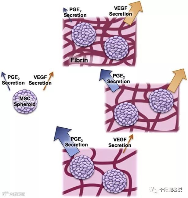 本文通过改变纤维蛋白水凝胶的物理特性,增加间充质干细胞(MSCs)球体中VEGF和PGE2的产生和生物活性,从而促进伤口愈合。