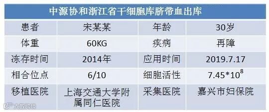 30岁的宋某,出现咳嗽、发烧、贫血症状,去某医院检查确诊为再生障碍性贫血,转入上海交通大学附属同仁医院。主治医生刘医生建议采用干细胞移植作为治疗方案,随后向中源协和浙江省干细胞库发出配型通知。中源协和浙江省干细胞库根据院方提供的配型信息立即进行比对,提供了6份脐带血的匹配信息,通过沟通选择了其中一份2014年在嘉兴市妇保院采集的脐带血。中源协和浙江省干细胞库配合同仁医院开通绿色通道,对该份脐带血进行再次复检,确认细胞活性和安全性,在今天凌晨5点多出库送往上海交通大学附属同仁医院,经过我库技术人员的细胞复苏,在上午9时该份脐带血成功输入到宋某体内。