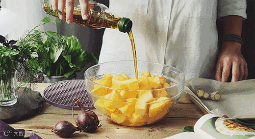 1、红薯、乳瓜切成块。