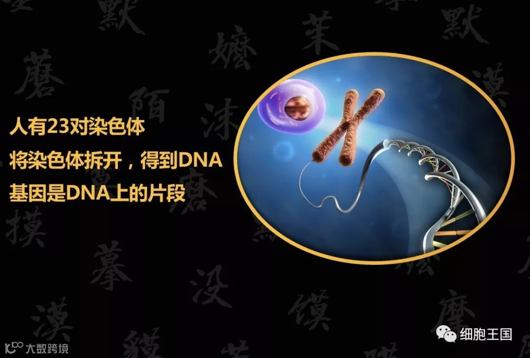 那么除了细胞凋亡和宝宝的之外,游离DNA还来自哪里?肿瘤。为什么会有肿瘤的游离DNA?原理是一样的,肿瘤细胞也有生长周期,它一旦破裂,它的DNA也会在血液里出现。肿瘤的DNA和普通的DNA是有显著差别的。普通细胞的DNA有23对染色体,其中任何一条把它打开,才是双螺旋;双螺旋取出其中一段,才能看到A、T、C、G,而且它们永远是两两配对。而在这个层面上,动物、植物、细菌、病毒大部分都是这样编码的。RNA病毒可能还会有U。那么肿瘤为什么会显著不同呢?