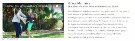 Grace Mathews的父母在她出生时储存了脐带血,后来治疗她脑部疾病中发挥重要作用。
