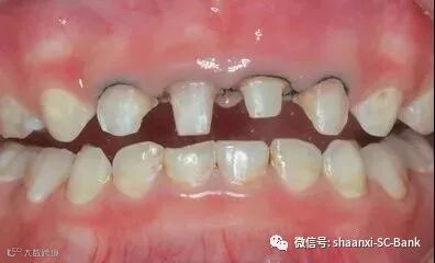 情况越来越严重,家长开始着急,村头摆地摊“100块种牙”的老大爷又说了:“这算事儿吗?换牙就好了,一点不影响!”于是,牙齿就变成这样了: