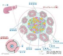 内分泌腺由大小不同的细胞团──胰岛所组成,胰岛主要由4种细胞组成:A细胞、B细胞、D细胞、PP细胞。