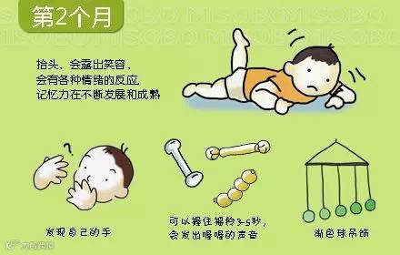 第2个月:开始学习抬头,发现自己的手,偶尔会露出笑容,会有各种情绪的反应。