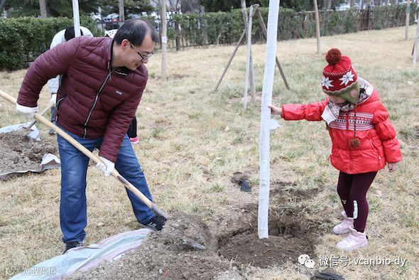 随后,植树正式开始,全家齐上阵,为宝贝种下“愿望树”。