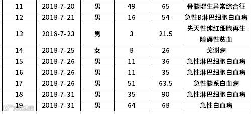 2018年7月份脐带血应用情况