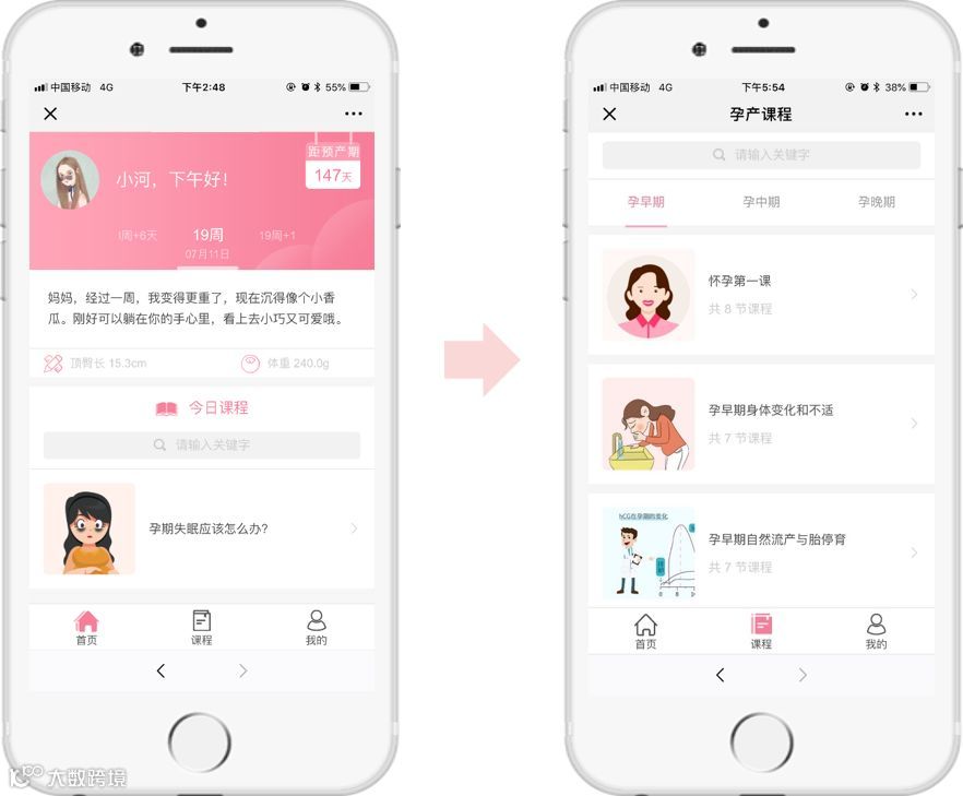 怀孕期间,每天推送定制化的课程,让我们保持持续不间断的学习。