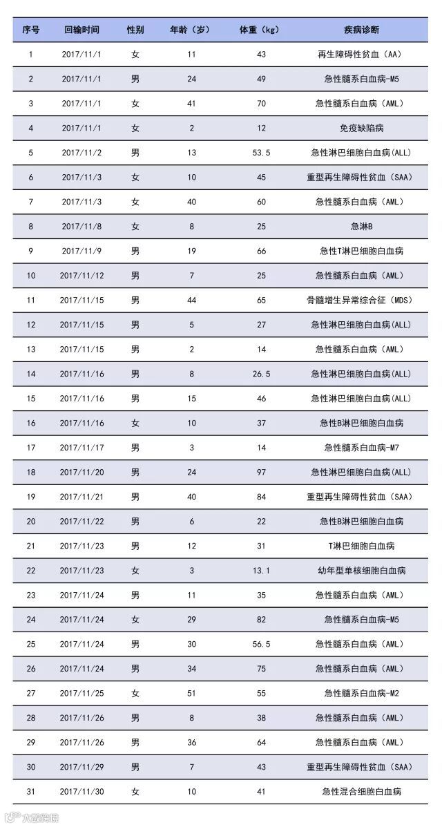 1、天津脐血库,11月脐带血救治31人,创造了单月脐带血应用的历史新高。