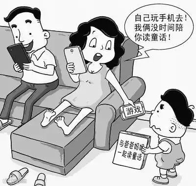 父母爱追午夜场电视、彻夜打牌娱乐,为了避免孩子打扰自己,常常丢给孩子一个手机、或让孩子陪同自己看电视、娱乐。