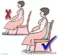 坐姿:孕妈在坐着时,腰部尽量挺直,后面可以垫一个柔软的靠垫。选择适合自己的椅子,要尽量往里坐,后背用下部紧贴靠背。另外,别坐太软的椅子。双脚也可放于矮凳上,帮助腿部血液循环。不要跷二郎腿,两脚平放在地面上。避免保持同一个坐姿超过30分钟。