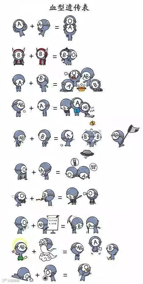 一直怀疑自己不是亲生的O型君终于发现“血型”的真相了,看来知识改变命运啊!为了让更多人掌握血型遗传规律,我们特意与大家分享了萌萌哒的血型遗传表,一起来学习吧!