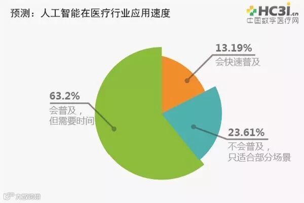 据调查数据显示,61.11%的人认为人工智能在医疗行业的主要发展机遇是技术的增长速度快于其应用速度。