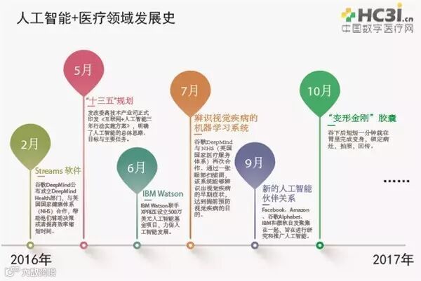 可见,2016年既是人工智能的黄金时代,同时也是人工智能+医疗的黄金时代。而2017年被称为人工智能发展的拐点,而这一拐点的标志之一就是人工智能技术的加速产品化。