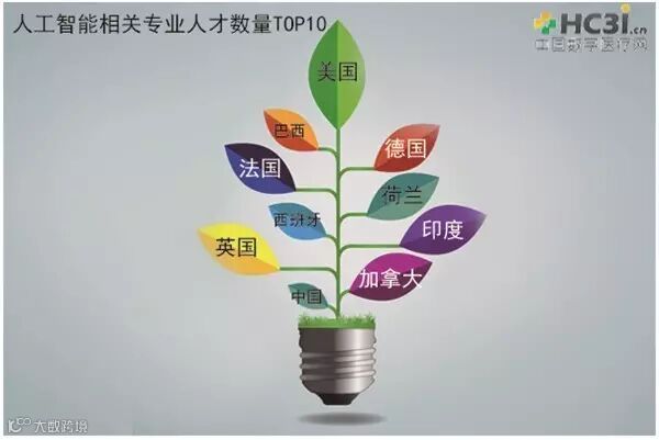 全世界都需要优秀的人工智能人才,以进一步释放机器计算和机器学习技术的巨大潜能。目前拥有人工智能相关专业人才数量最多的十个国家依次为:美国、英国、印度、加拿大、法国、荷兰、德国、西班牙、巴西、中国。