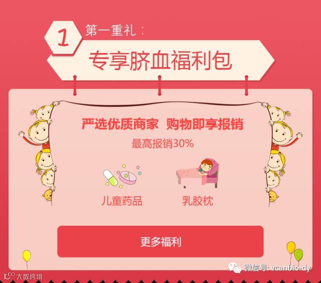 袋鼠健保为脐血储户设置专享的“脐血福利包”,脐血储户无需成为健保会员也能享受报销福利!脐血福利包内包含有天士力大药房的儿童用药、素万儿童乳胶枕以及专享母婴福利计划,满足宝宝成长需求,保护孩子健康成长!