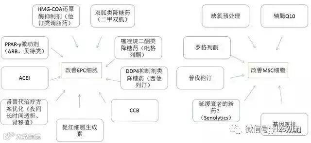 如果考虑使用这些自体细胞来治疗 CKD,首先遇到的问题是:从 CKD 患者身体里获取的 EPC 或 间充质干细胞是否有足够的数量和活力?影响因素有哪些?有什么干预措施可以提高 EPC 或间充质干细胞的数量和功能?