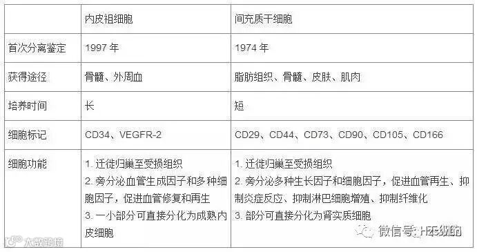 表 1 内皮祖细胞与间充质干细胞的比较