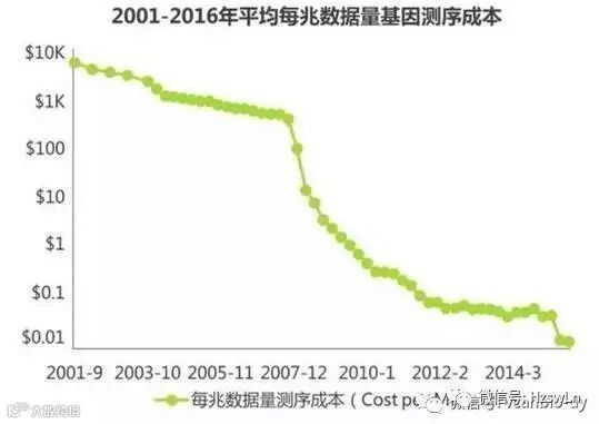 伴随基因测序技术的更新换代,基因测序的成本不断下降的趋势仍将继续。基因测序成本以超“摩尔定律”的速度不断下降,从单个人类基因组1000万美元下降到 2013年的5000美元;2014年1月Illumina推出HiSeq X Ten 更是将单人类基因组测序成本降至1000 美元以下。此次推出的NovaSeq系列测序仪进一步将基因测序成本刷新100美元。基因测序成本的进一步下降,将为基因测序技术的广泛使用提供良好的经济基础,也将推动医疗行业的大变革。
