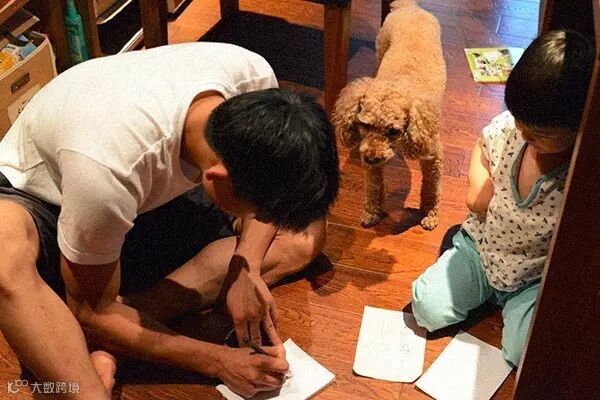 刚吃完晚饭的小威像往常一样,拿出绘画本,准备练习。而妈妈也像往常一样,搞好卫生便坐在孩子的身边,看着孩子给一栋小房子上色。