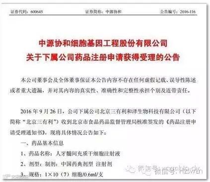 打造“精准医疗”全产业平台外部扩张延伸产业链的同时,中源协和内部的精耕细作也在深度并行。 “内生增长方面,我们的重点是确保细胞基因的核心竞争力,这两个方面我们绝对要在行业内占据主导地位。”吴明远对《财经国家周刊》记者表示。 在他看来,目前国内精准医学依然处于科学研究阶段,遗传学、药物基因组学、新的靶向治疗方案等尚在探索当中,并且“精准医疗”在目前阶段还没有形成清晰而成熟的商业模式,为此大力开展细胞治疗药物的研发对于精准医学商业化、产业化至关重要。 “国内干细胞第一个新药一定会落户到中源协和。”吴明远透露,不久前公司旗下北京三有利和泽生物科技有限公司研发的“人牙髓间充质干细胞注射液”是国内首个牙源干细胞药物,注册申请已经获得北京市药监局受理。除此之外,公司另一款新药“间充质干细胞抗肝纤维化注射液”也在申报当中。