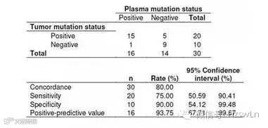 · 检测到30例早期(Ⅰ-Ⅱ期)非小细胞肺癌患者血浆ctDNA的常见驱动突变,并且与组织tDNA高度一致。其中,一致性为80.0%,敏感性为75%,特异性90%,阳性预测值93.8%。这是目前早期肿瘤ctDNA研究最好的一致性结果。