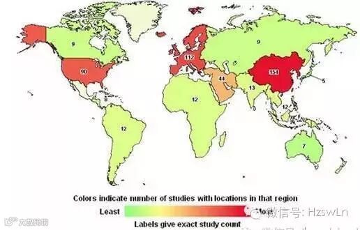在全球临床试验中,中国有95项临床研究占全球的21%,美国占20%,欧洲占25%。具体分布如图所示。
