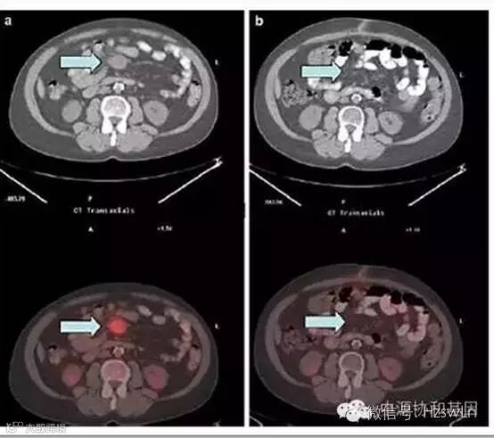 克唑替尼用药三个月后PET-CT扫描表明腹部肿块完全消失。