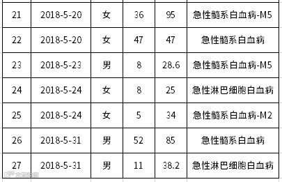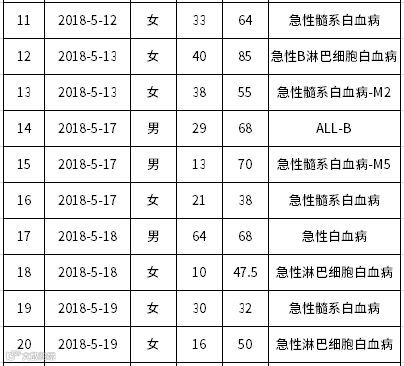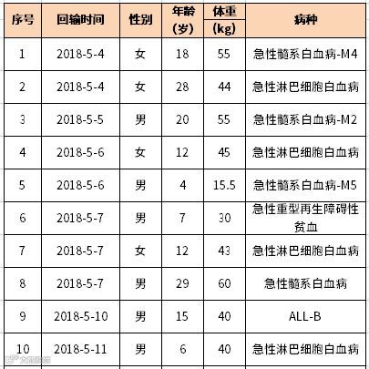治疗病种包括急性淋巴细胞白血病、急性髓系白血病、急性重型再生障碍性贫血等。