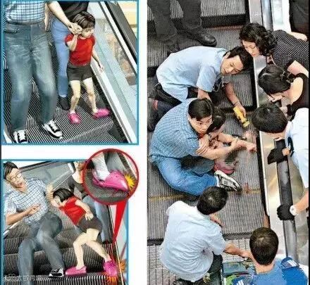 当时孩子就安安静静的站在扶梯上,无缘无故鞋子就被卷进去,要是脚没有及时抽离,后果不堪设想。