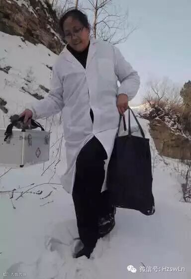 山东淄博市淄川区岭子镇双峪村,60岁的孙凤莲给村民看病已经坚持44年了。图为走在积雪的山路上。