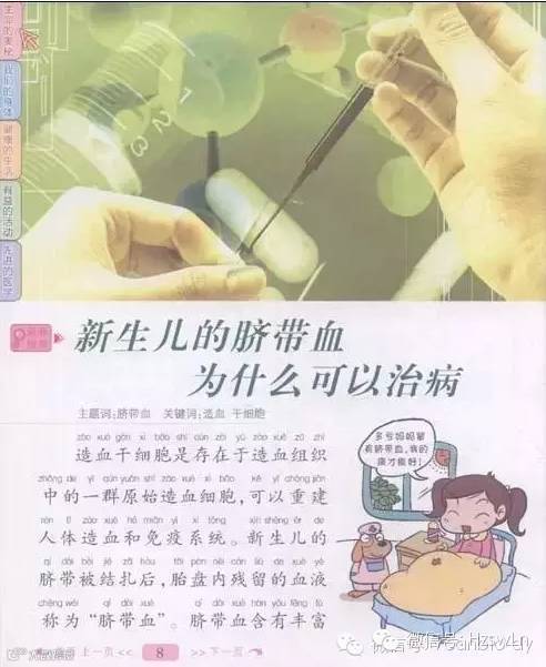 在最新版的《新十万个为什么·人体与医药》中,出现了时下人们关心的关于脐带血的问题——“新生儿的脐带血为什么可以治病”。书中提到:脐带血中含有丰富的造血干细胞,可以重建造血和免疫系统,脐带血中的造血干细胞繁殖能力较强,采集和储存较容易,没有受到放射性物质、病菌等污染,移植后较少有排斥反应,因此,越来越多的父母选择为自己的孩子保留脐带血,以备日后之用。