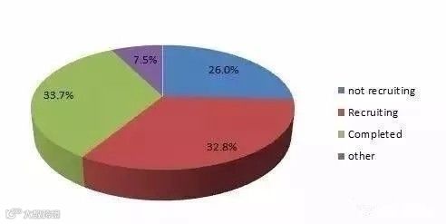 从临床研究的所处阶段的情况来看,根据可以获得相关数据的558项临床研究结果分析,可以发现已经完成和正在开展的临床研究各占1/3(表2)。