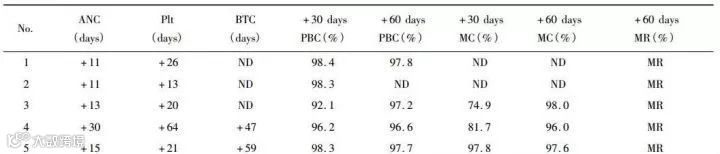 表4:白血病患儿造血重建情况