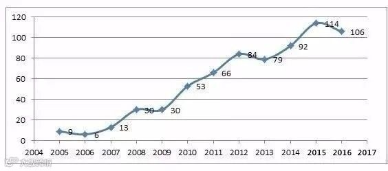 表1:2005年-2017年间充质干细胞临床研究变化趋势