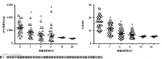 表5:间充质干细胞移植对SLE患者疾病活动度及尿蛋白的影响