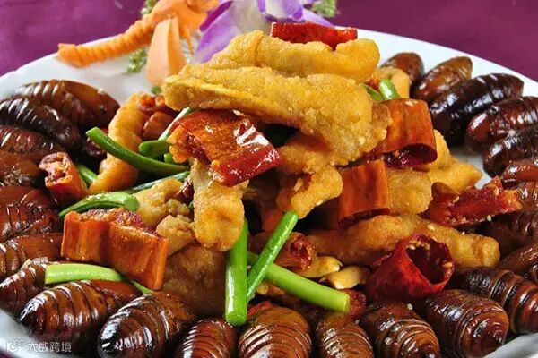 另外蚕蛹的营养虽然不错,可还是有个缺点,就是不含膳食纤维,这个缺点就要搭配高膳食纤维的食物,青红椒、洋葱、紫甘蓝等。