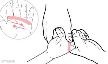 推小横纹(有些派系称此穴四横纹或大四横纹)