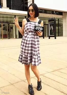 好,现在来打量一下自己最瘦的地方,总有一些地方,比如锁骨、肩膀、小腿,是没有在孕期发胖的,这就是我们显瘦的重点。下面的造型就把较瘦的肩膀和小腿露出来,同时盖住了浮肿的大腿。