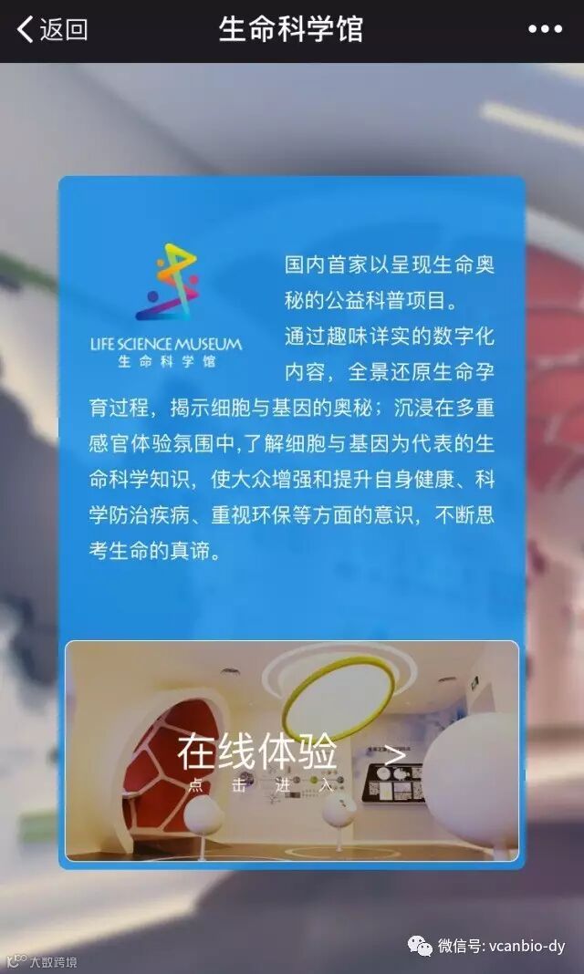 “中源协和生命科学馆全景漫游”正式上线,科学馆全景漫游打通现有空间、时间限制的壁垒,让人如身临其境一般,足不出户自由“徜徉”于生命科学馆中。