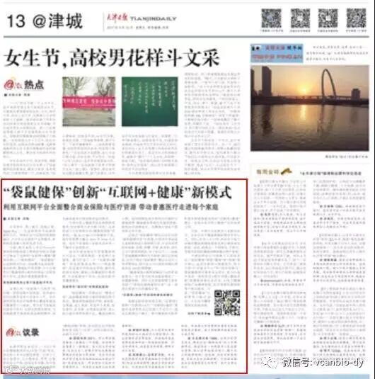 全国最有影响力的权威媒体之一《天津日报》重点关注了“袋鼠健保计划”的互联网属性,对“互联网+健康”这种产业新动向予以详细报道。