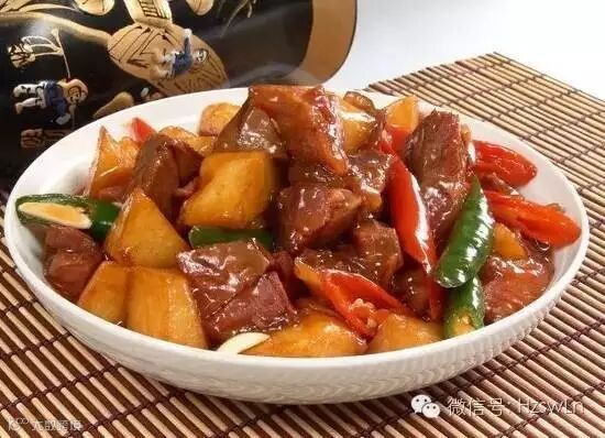 土豆烧牛肉是绝配,牛肉能补充土豆中缺乏的矿物质铁和蛋白质,土豆则可补充牛肉缺少的碳水化合物和维生素C。