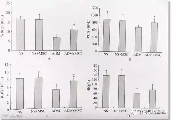 ▲间充质干细胞治疗明显改善ADM导致的骨髓抑制