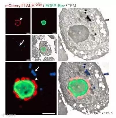 在该项研究中,研究人员通过对传统TALE介导的端粒、着丝粒和核仁区核糖体DNA等基因组重复序列的成像结果进行细致分析,发现利用传统的TALE标记基因组重复序列时会在细胞内产生异常的聚集斑块(aggregates),且这些聚集斑块多数情况下脱离了基因组上的DNA靶序列,因而极大地限制了TALE在染色质三维成像中的应用。研究团队通过筛选一系列可提高细胞内蛋白溶解性的“助溶解多肽”,发现硫氧还蛋白(Thioredoxin)与TALE的融合表达(该融合蛋白称为TTALE)能够特异地清除TALE成像时伴生的聚集斑块,从而最大程度地释放TALE在染色质三维成像方面的效能。实验结果表明,同Cas9相比,TTALE具有成像信噪比高、易于操作等优点,可广泛应用于胚胎干细胞、诱导性多能干细胞、成体干细胞(间充质干细胞和神经干细胞)、终末分化细胞(神经元和血管平滑肌细胞)、肿瘤细胞以及卵细胞等多种人类细胞类型。此外,利用该工具,研究者们首次实现了对28S核糖体DNA的活细胞标记,并揭示28S核糖体DNA主要分布于核仁区的外周,这将为理解核糖体DNA和核仁在多种生命过程中的功能提供重要的线索和研究工具。